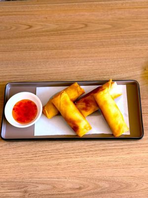Japanese Vegetable Pancake (Kakiage Tempura) with sweet chilli sauce. Please note that Kakiage and its batter contains eggs.