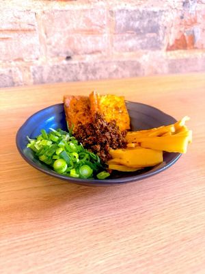 Additional Vegan Fried Tofu Chashu, Bamboo Shoot and spring onions.