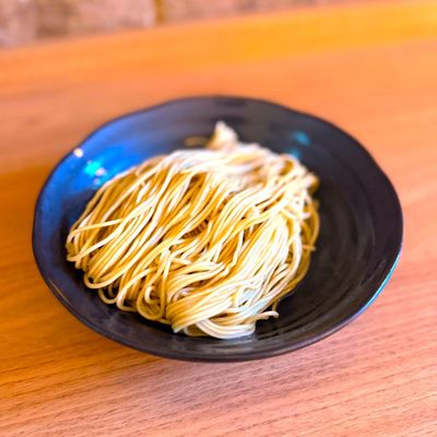 Home-made 1.25mm wide ramen noodles Please kindly note that our thick noodle for Aburamen (Dry Noodle) is not currently available due to its production limitation. Our sincere apologies for any inconvenience in advance (本当にごめんなさい by オーナー )m(_ _)m