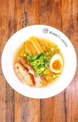 (Tori Shio Chintan Ramen) Chicken Clear Soup, Salt, Marinated 1/2 Cut Egg, Marinated Bamboo Shoot, Spring Onion, Pork Belly Charshu. **Dearest customers, please let our team know if you like to have Nori Sheet. Sincere apologies for this inconvenience and appreciate for your kind support :)) (Nori upon your request)**